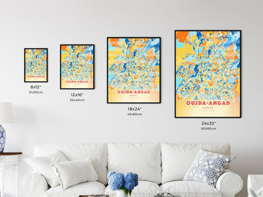 Colorful OUJDA-ANGAD MOROCCO Fine Art Map Poster | Customizable