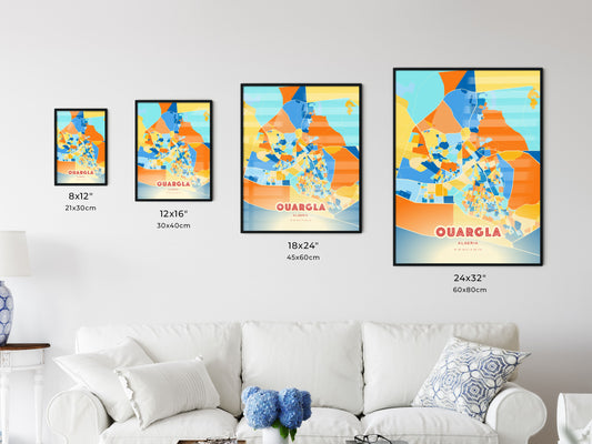 Colorful OUARGLA ALGERIA Fine Art Map Poster | Customizable