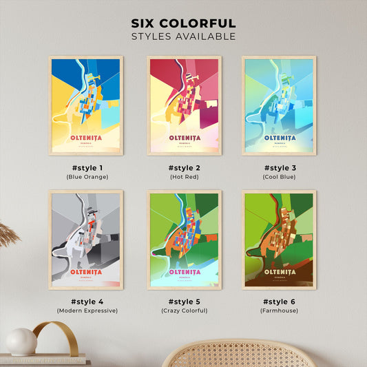 Colorful OLTENIȚA ROMANIA Fine Art Map Poster | Customizable
