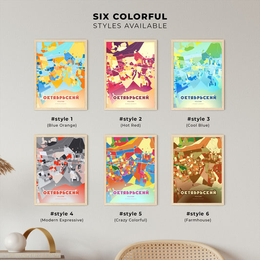 Colorful OKTYABRSKY RUSSIA Fine Art Map Poster | Customizable