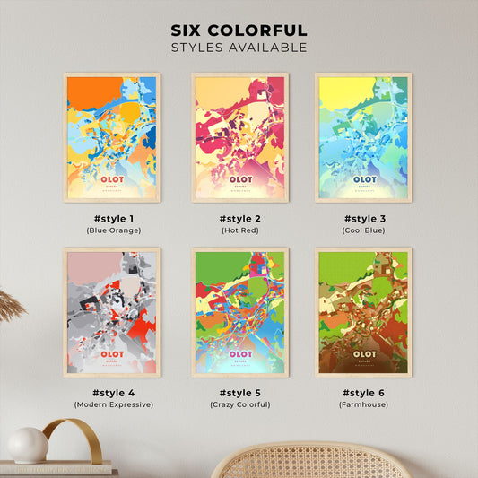 Colorful OLOT SPAIN Fine Art Map Poster | Customizable