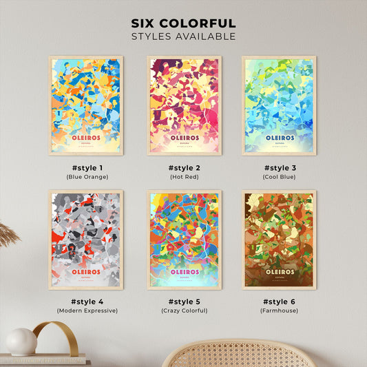 Colorful OLEIROS SPAIN Fine Art Map Poster | Customizable