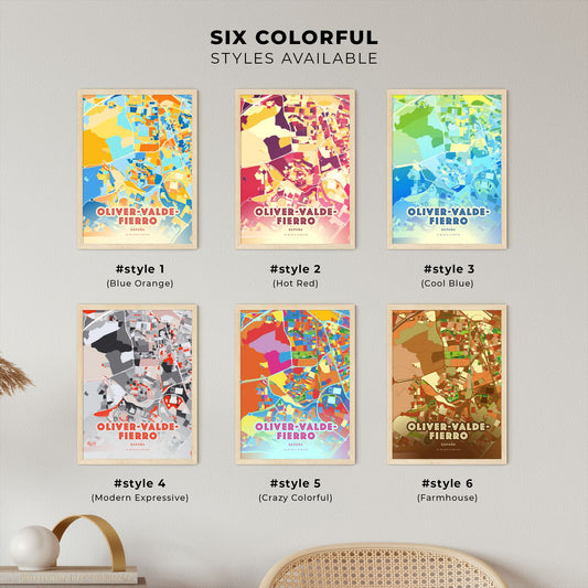 Colorful OLIVER-VALDEFIERRO SPAIN Fine Art Map Poster | Customizable
