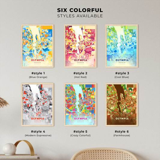 Colorful OLYMPIA WASHINGTON Fine Art Map Poster | Customizable