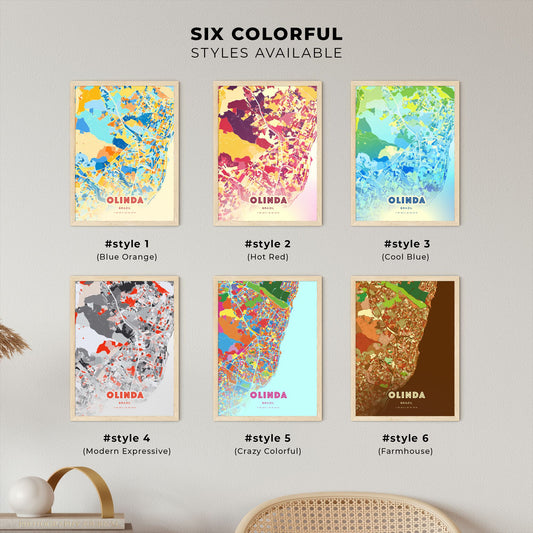 Colorful OLINDA BRAZIL Fine Art Map Poster | Customizable