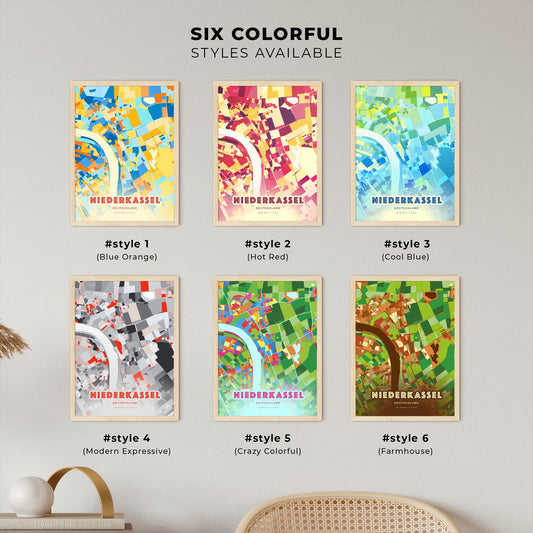 Colorful NIEDERKASSEL GERMANY Fine Art Map Poster | Customizable
