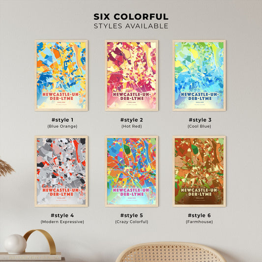 Colorful NEWCASTLE-UNDER-LYME ENGLAND Fine Art Map Poster | Customizable