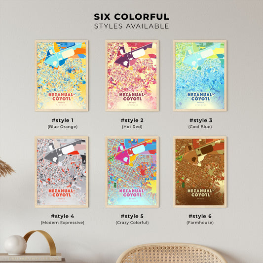 Colorful NEZAHUALCÓYOTL MEXICO Fine Art Map Poster | Customizable