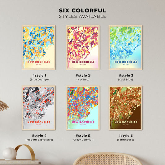 Colorful NEW ROCHELLE NEW YORK Fine Art Map Poster | Customizable