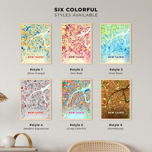 Colorful NEW TAIPEI TAIWAN Fine Art Map Poster | Customizable