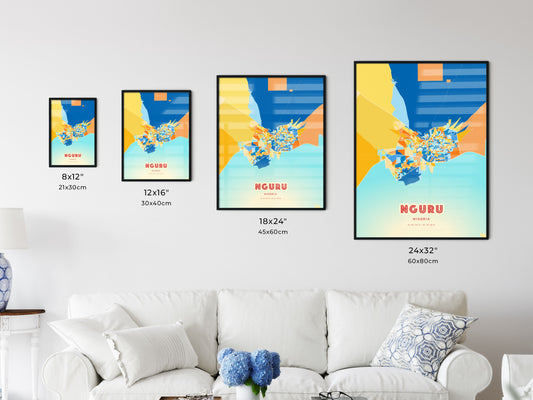 Colorful NGURU NIGERIA Fine Art Map Poster | Customizable