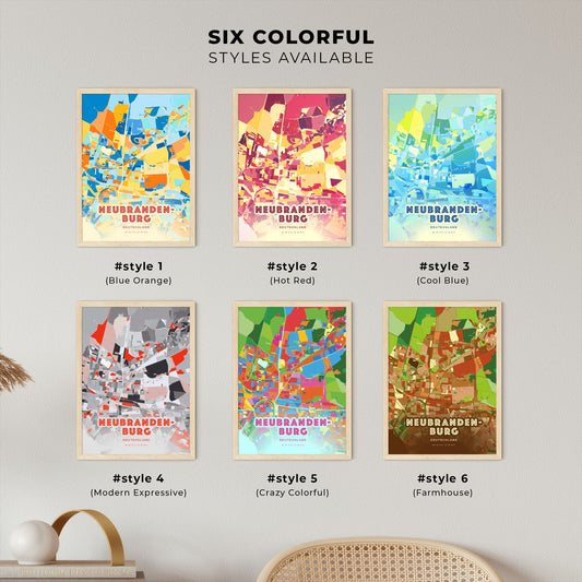 Colorful NEUBRANDENBURG GERMANY Fine Art Map Poster | Customizable