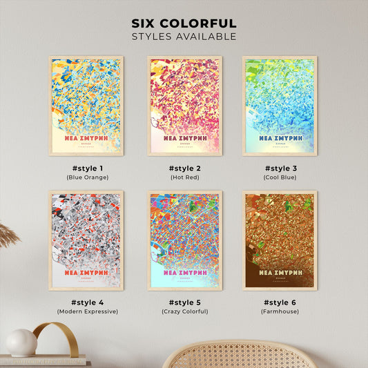 Colorful NEA SMYRNI GREECE Fine Art Map Poster | Customizable