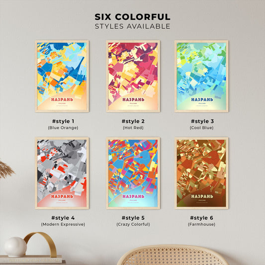 Colorful NAZRAN RUSSIA Fine Art Map Poster | Customizable