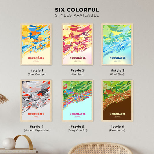 Colorful NEUCHÂTEL SWITZERLAND Fine Art Map Poster | Customizable