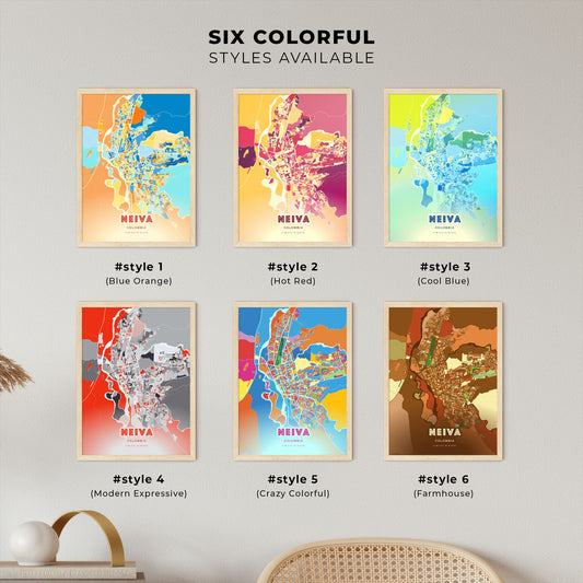 Colorful NEIVA COLOMBIA Fine Art Map Poster | Customizable