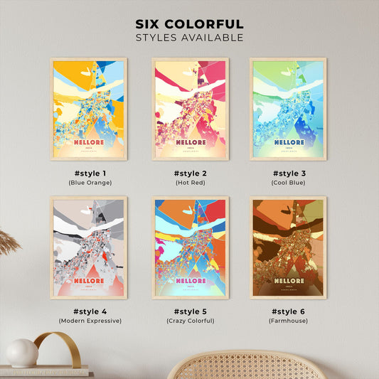 Colorful NELLORE INDIA Fine Art Map Poster | Customizable