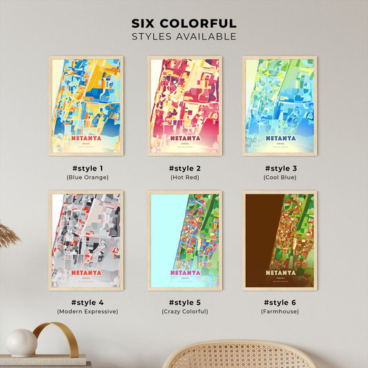 Colorful NETANYA ISRAEL Fine Art Map Poster | Customizable