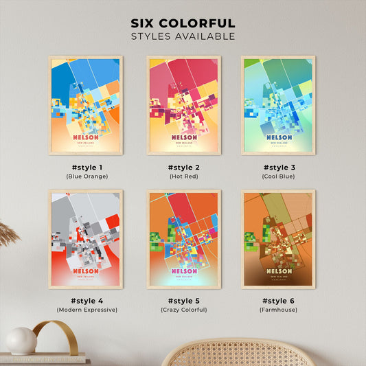 Colorful NELSON NEW ZEALAND Fine Art Map Poster | Customizable