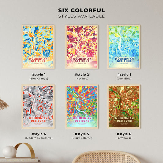 Colorful MULHEIM AN DER RUHR GERMANY Fine Art Map Poster | Customizable