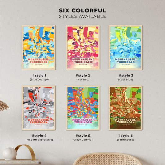 Colorful MUHLHAUSEN/THURINGIA GERMANY Fine Art Map Poster | Customizable