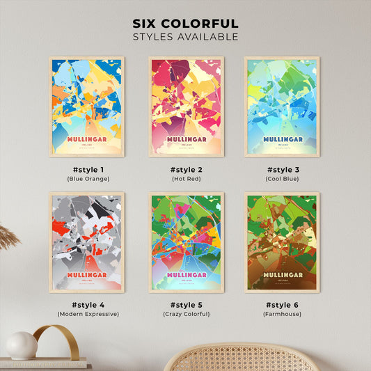 Colorful MULLINGAR IRELAND Fine Art Map Poster | Customizable