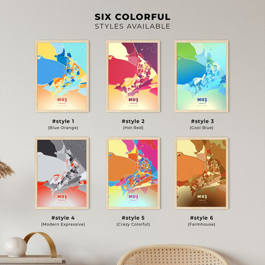 Colorful MUŞ TURKEY Fine Art Map Poster | Customizable