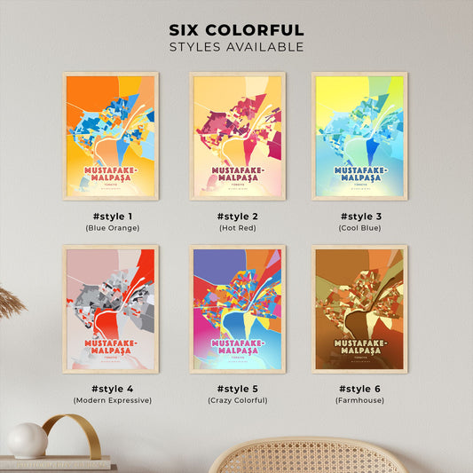 Colorful MUSTAFAKEMALPAŞA TURKEY Fine Art Map Poster | Customizable