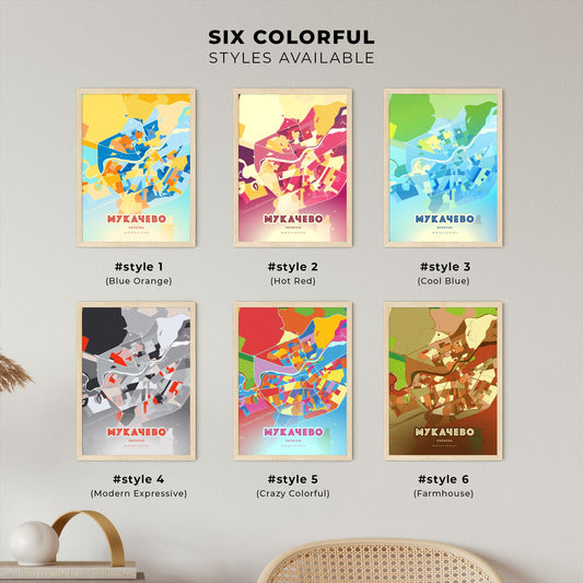 Colorful MUKACHEVO UKRAINE Fine Art Map Poster | Customizable