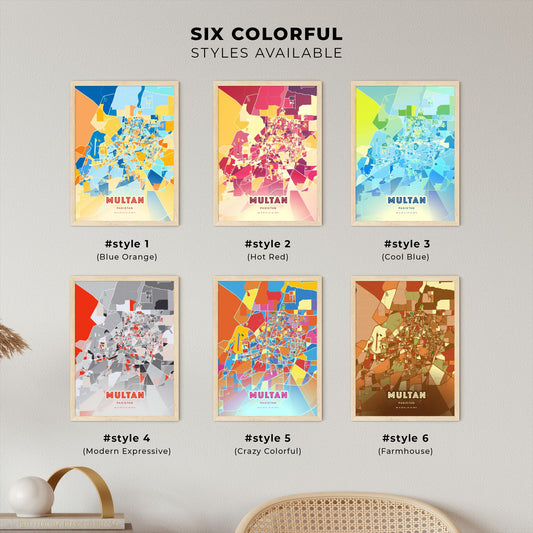 Colorful MULTAN PAKISTAN Fine Art Map Poster | Customizable