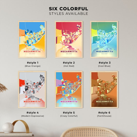 Colorful MUZAHMIYYA SAUDI ARABIA Fine Art Map Poster | Customizable