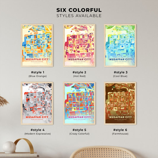 Colorful MUSAFFAH CITY UNITED ARAB EMIRATES Fine Art Map Poster | Customizable