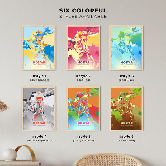 Colorful MOSTAR BOSNIA AND HERZEGOVINA Fine Art Map Poster | Customizable
