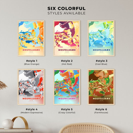 Colorful MOSFELLSBÆR ICELAND Fine Art Map Poster | Customizable