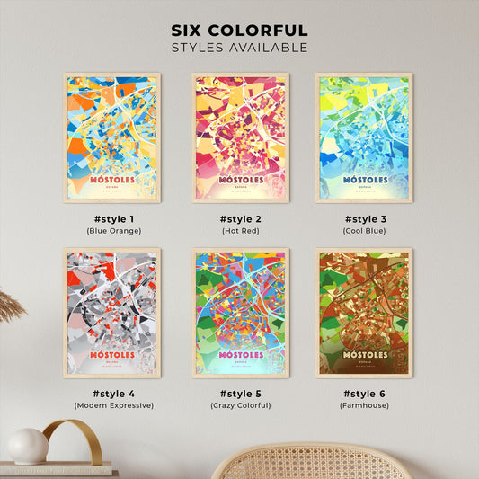 Colorful MÓSTOLES SPAIN Fine Art Map Poster | Customizable