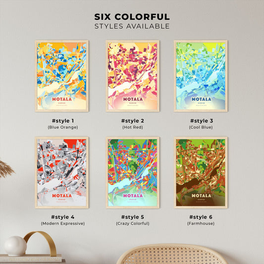 Colorful MOTALA SWEDEN Fine Art Map Poster | Customizable