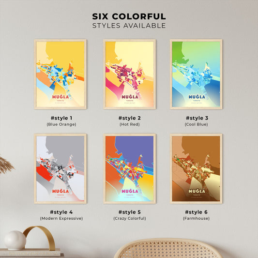 Colorful MUĞLA TURKEY Fine Art Map Poster | Customizable