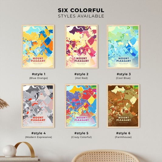 Colorful MOUNT PLEASANT SOUTH CAROLINA Fine Art Map Poster | Customizable