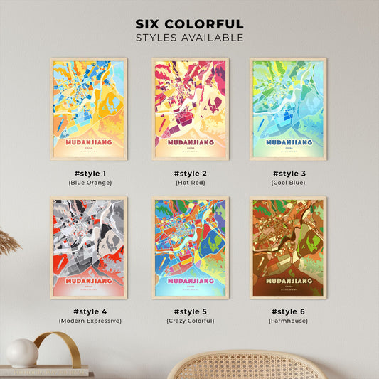 Colorful MUDANJIANG CHINA Fine Art Map Poster | Customizable