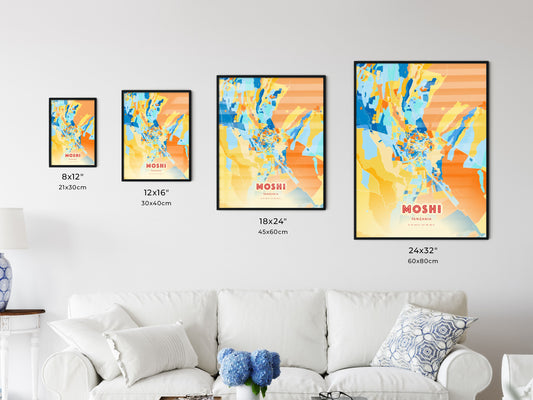 Colorful MOSHI TANZANIA Fine Art Map Poster | Customizable