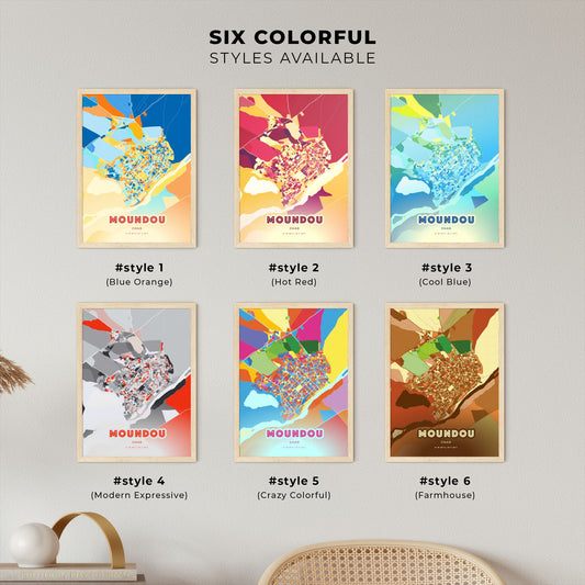 Colorful MOUNDOU CHAD Fine Art Map Poster | Customizable