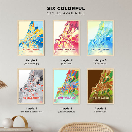 Colorful MOSTAGANEM ALGERIA Fine Art Map Poster | Customizable