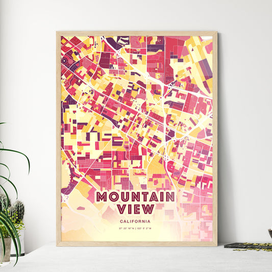 Colorful Mountain View California Fine Art Map Poster | Customizable