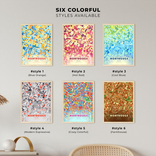 Colorful MONTROUGE FRANCE Fine Art Map Poster | Customizable
