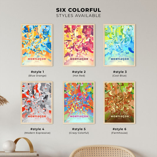 Colorful MONTLUÇON FRANCE Fine Art Map Poster | Customizable