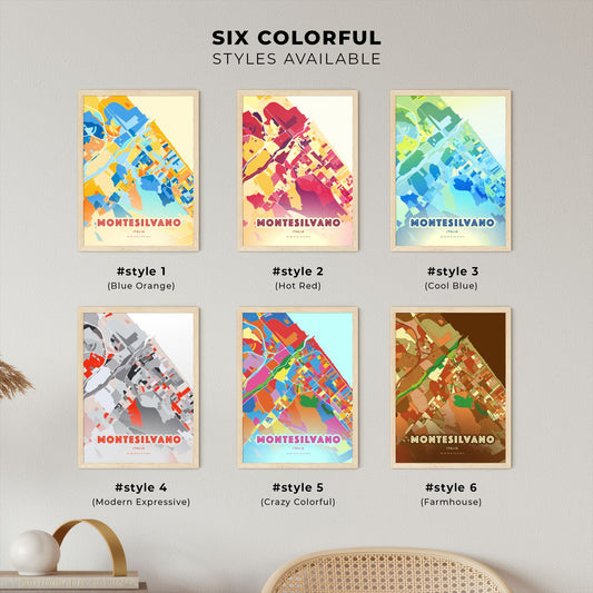 Colorful MONTESILVANO ITALY Fine Art Map Poster | Customizable