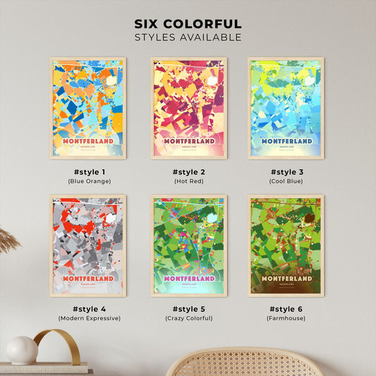 Colorful MONTFERLAND NETHERLANDS Fine Art Map Poster | Customizable