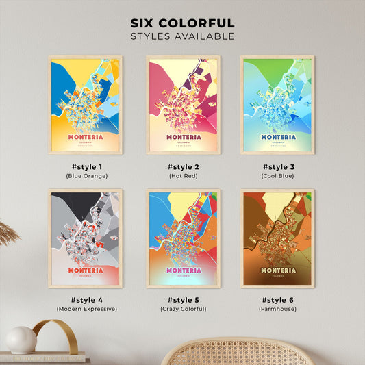 Colorful MONTERIA COLOMBIA Fine Art Map Poster | Customizable