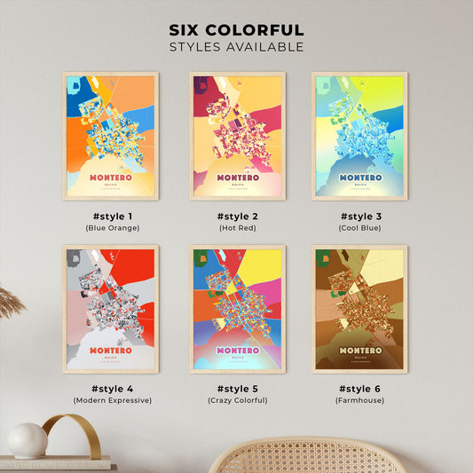 Colorful MONTERO BOLIVIA Fine Art Map Poster | Customizable