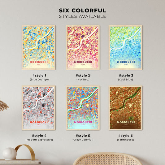 Colorful MORIGUCHI JAPAN Fine Art Map Poster | Customizable